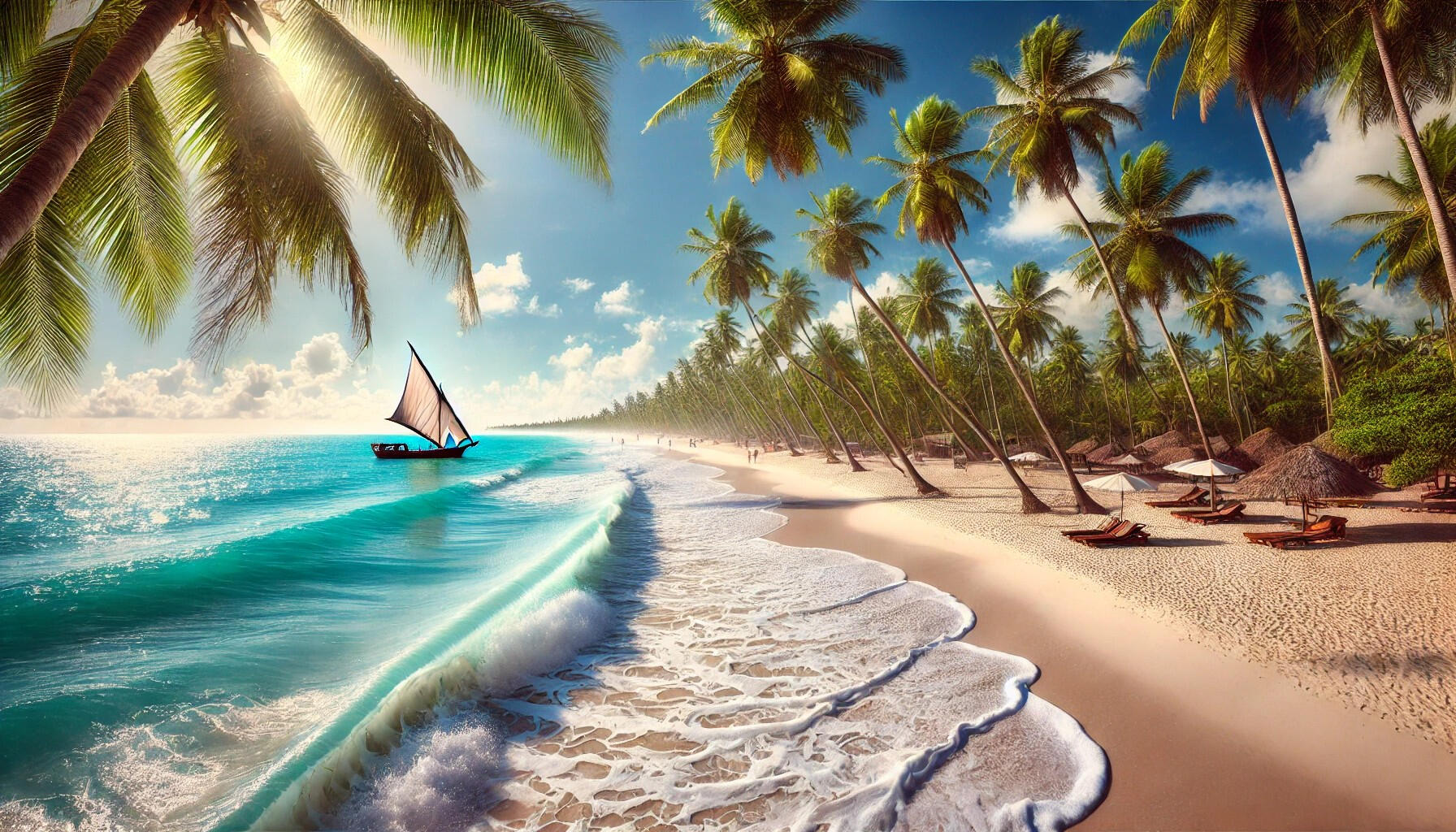 Diani Beach liegt etwa 30 km südlich von Mombasa und ist bekannt für seine weißen Sandstrände, türkisblaues Wasser und entspannte Atmosphäre.